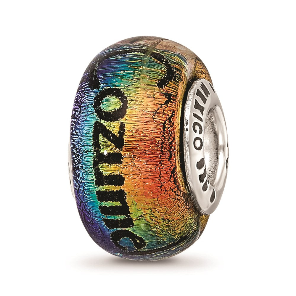 925 Sterling Silver Reflections Cozumel Orange Dichroic Glass Bead Charm Pendant