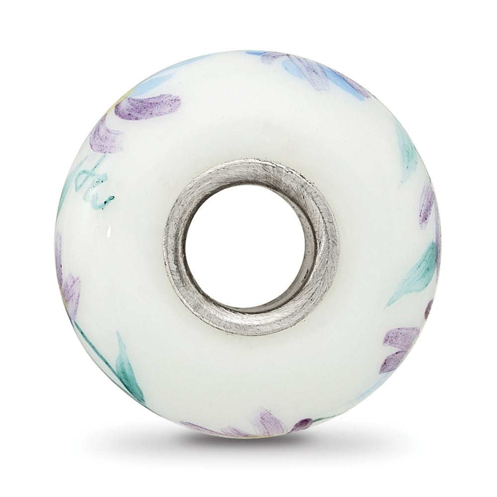 925 Sterling Silver Reflections Misty Morning Flowers Fenton Glass Bead Charm Pendant