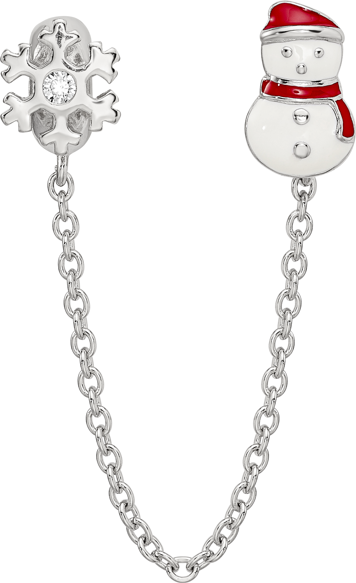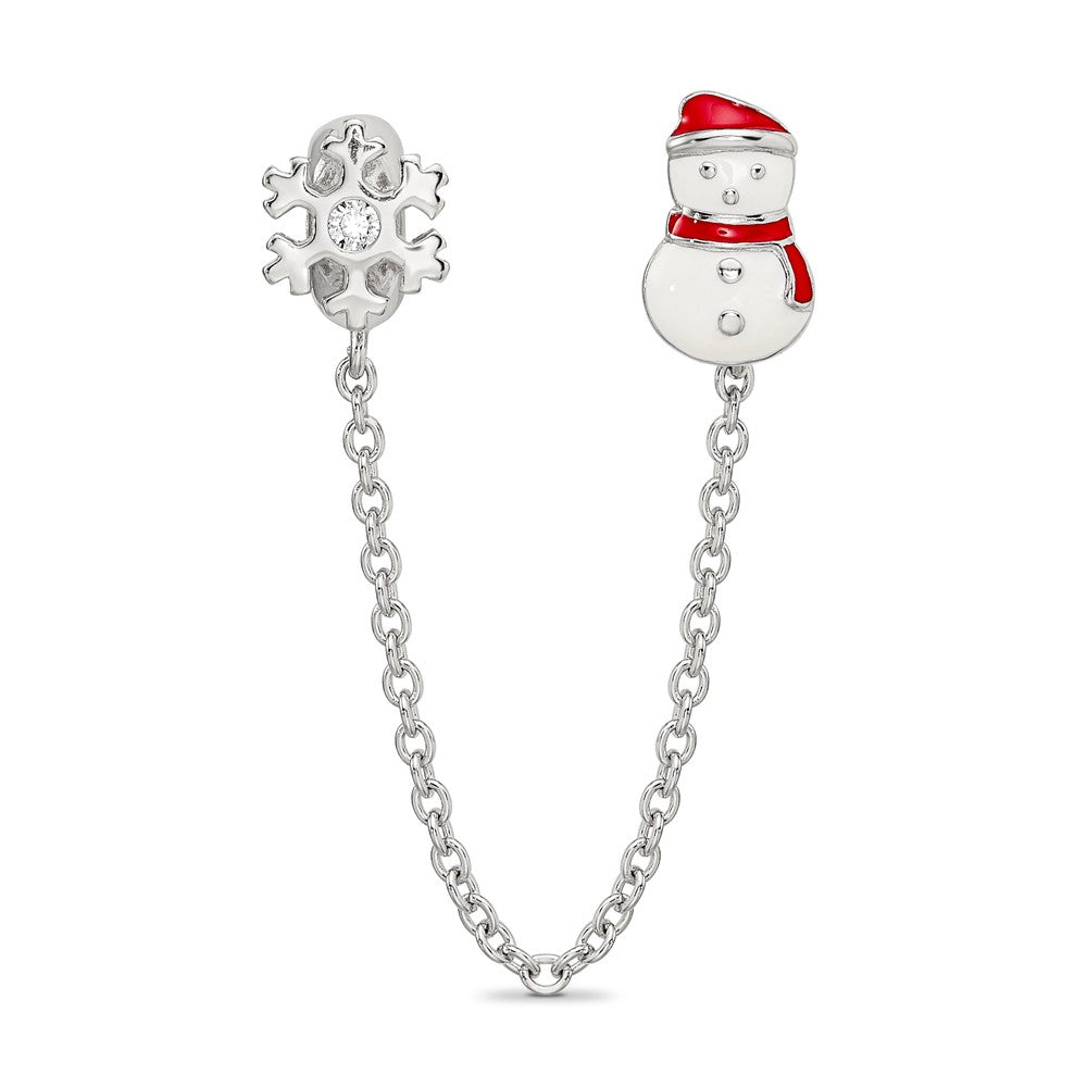 925 Sterling Silver Reflections Security Chain Snowman and Flake Cubic Zirconia Bead Charm Pendant, 3"