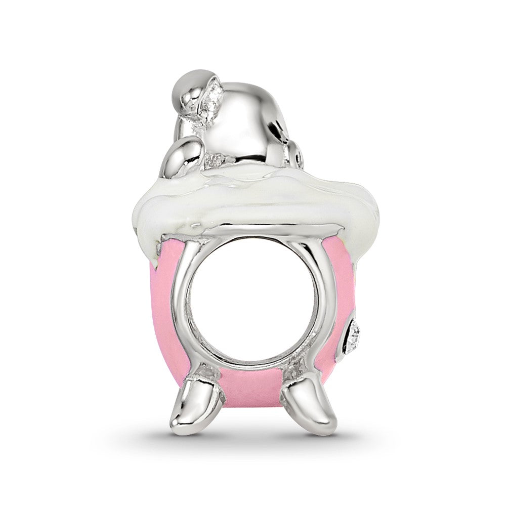 925 Sterling Silver Reflections Pink Enamel and Cubic Zirconia Pig in a Bathtub Bead