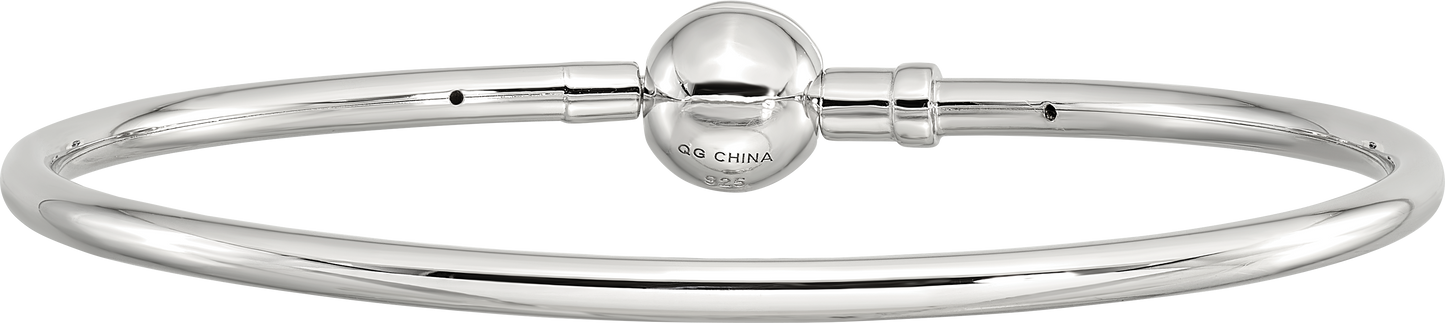 925 Sterling Silver Reflections Bangle Bracelet with a Circle Clasp Bead Bracelet, 8.25"