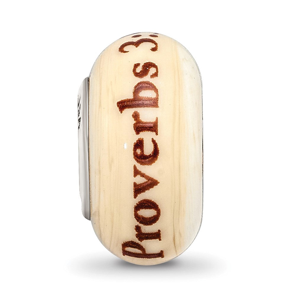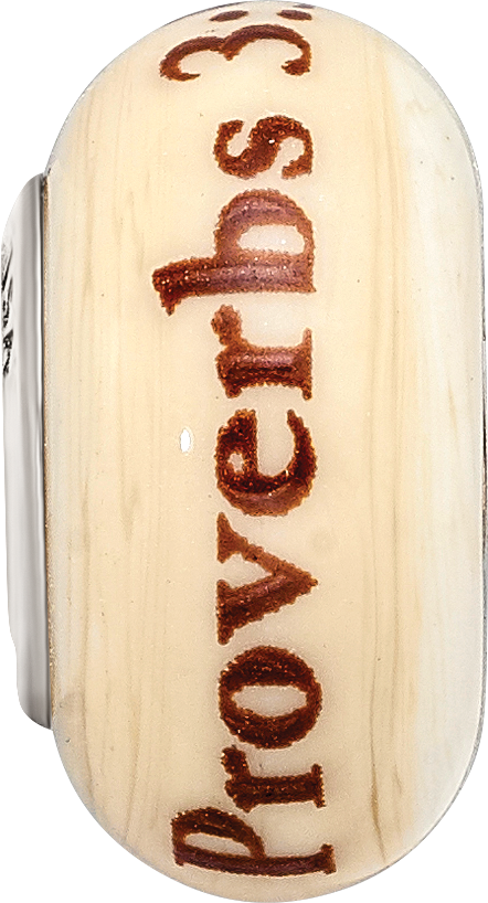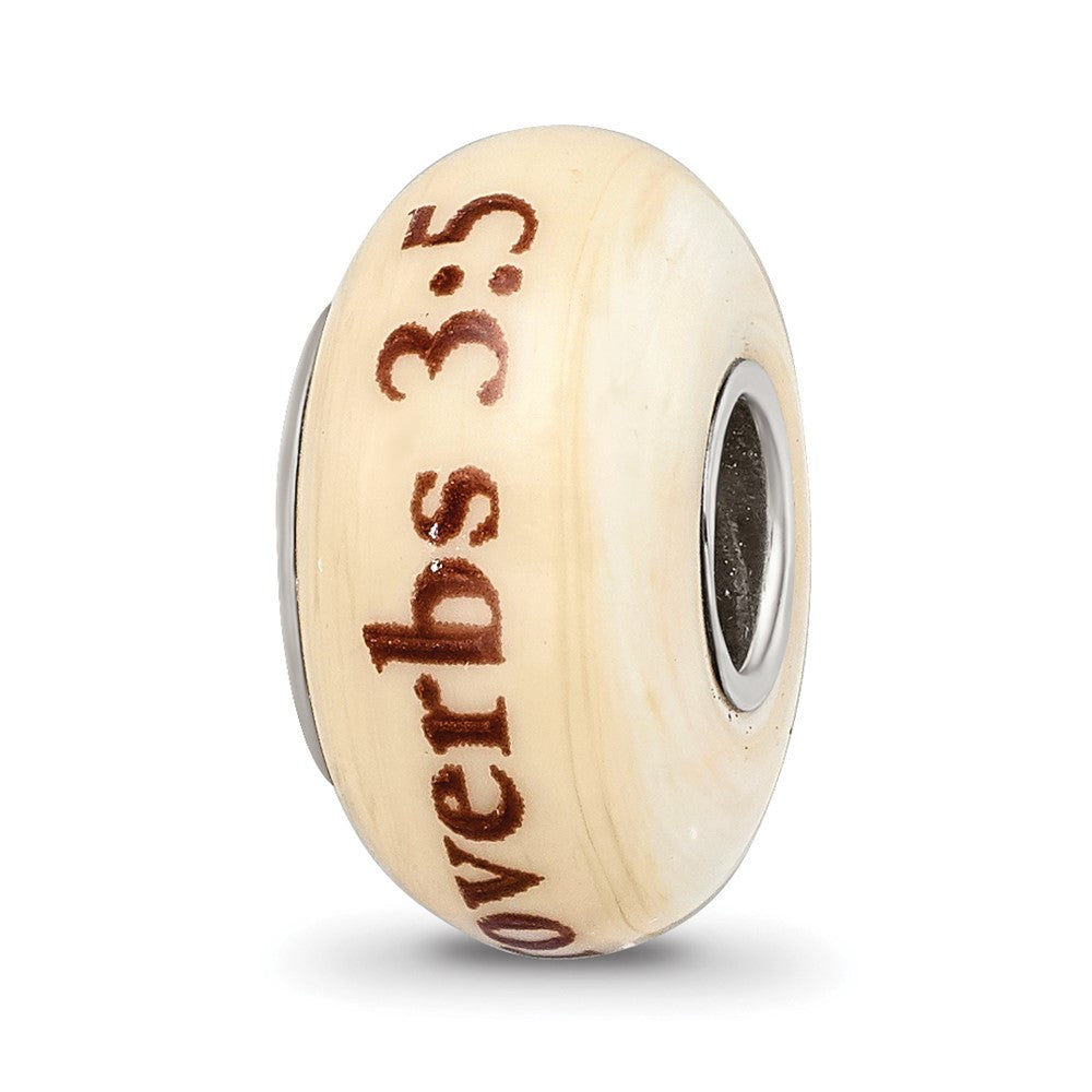 925 Sterling Silver Reflections Hand Painted Religious, Cream Glass Bead Charm Pendant