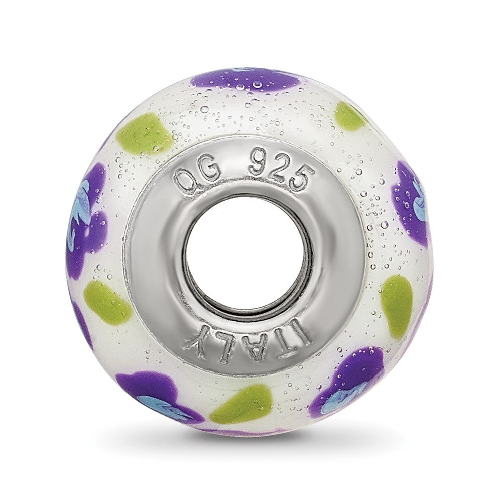 925 Sterling Silver Reflections Purple/Blue Glitter Flower Italian Glass Bead Charm Pendant