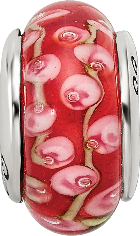925 Sterling Silver Reflections Pink/Red Hand-Blown Glass Bead