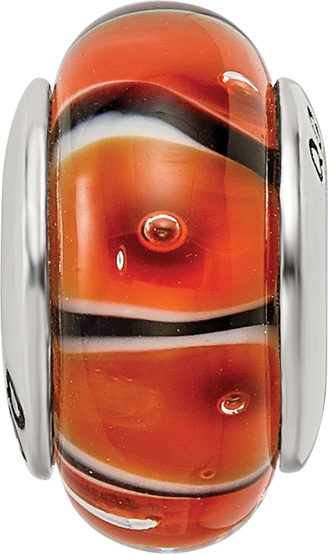 925 Sterling Silver Reflections Orange Hand-Blown Glass Bead Charm Pendant