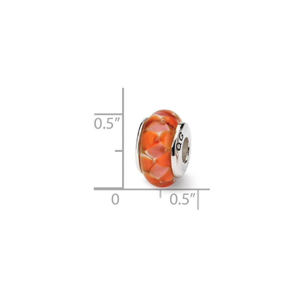 925 Sterling Silver Reflections Orange Hand-Blown Glass Bead Charm Pendant