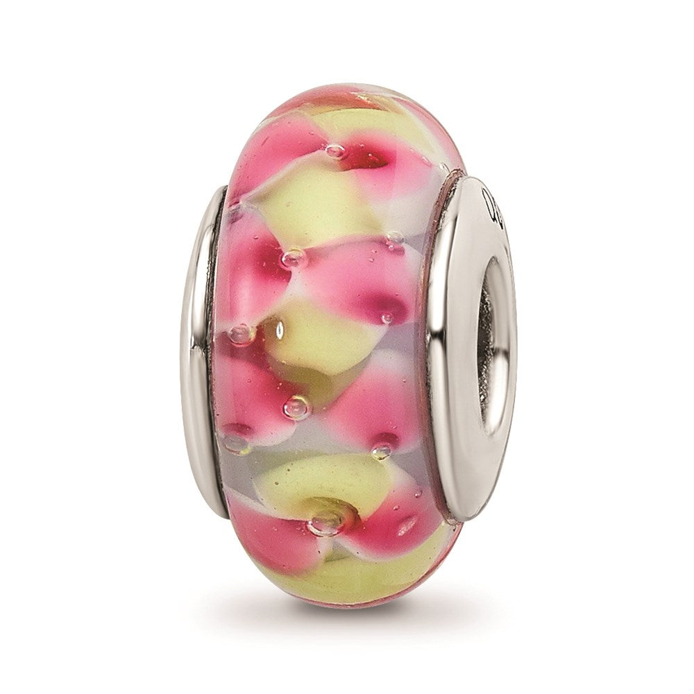 925 Sterling Silver Reflections Pink/Yellow Hand-Blown Glass Bead