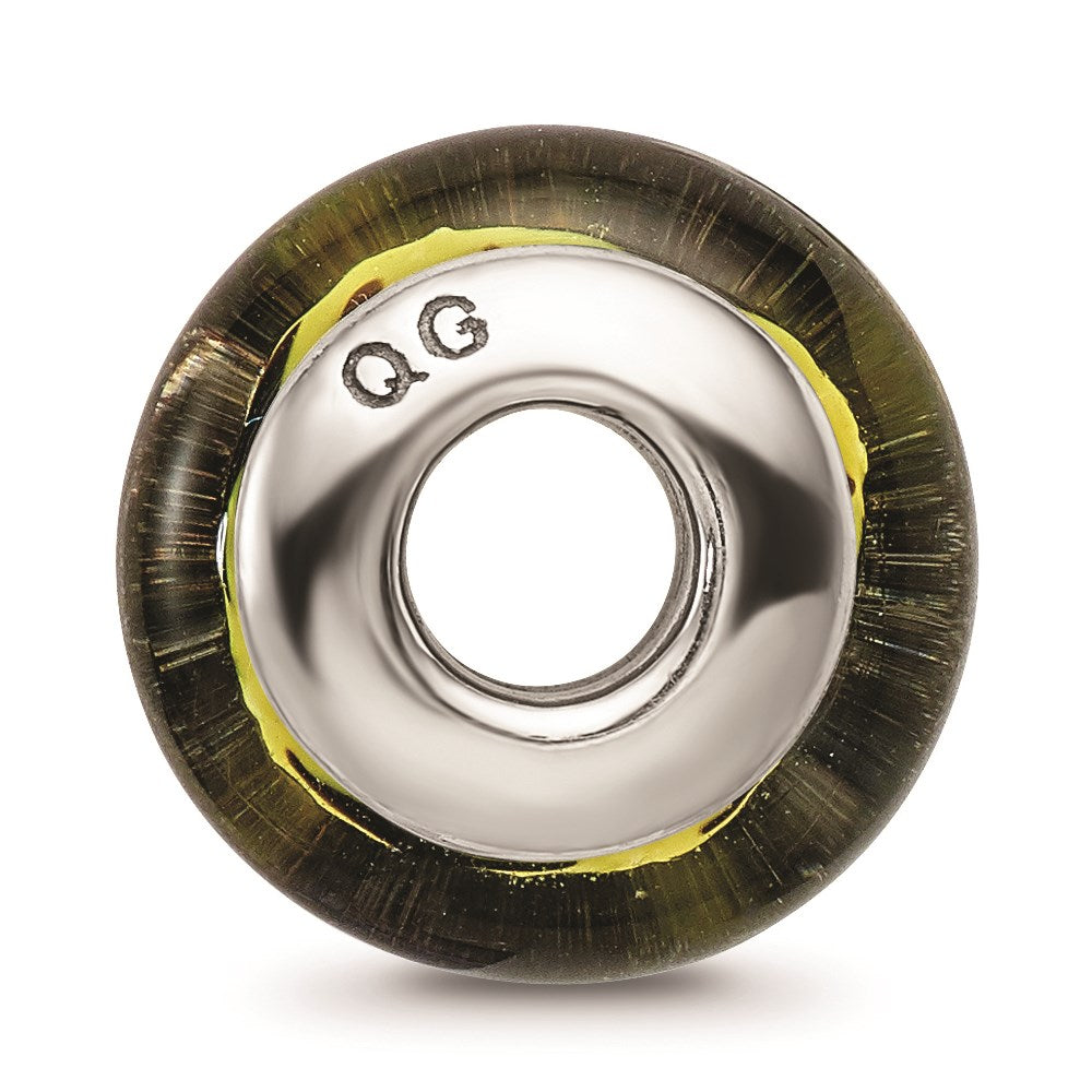 925 Sterling Silver Reflections Yellow-ish Black Hand-Blown Glass Bead Charm Pendant