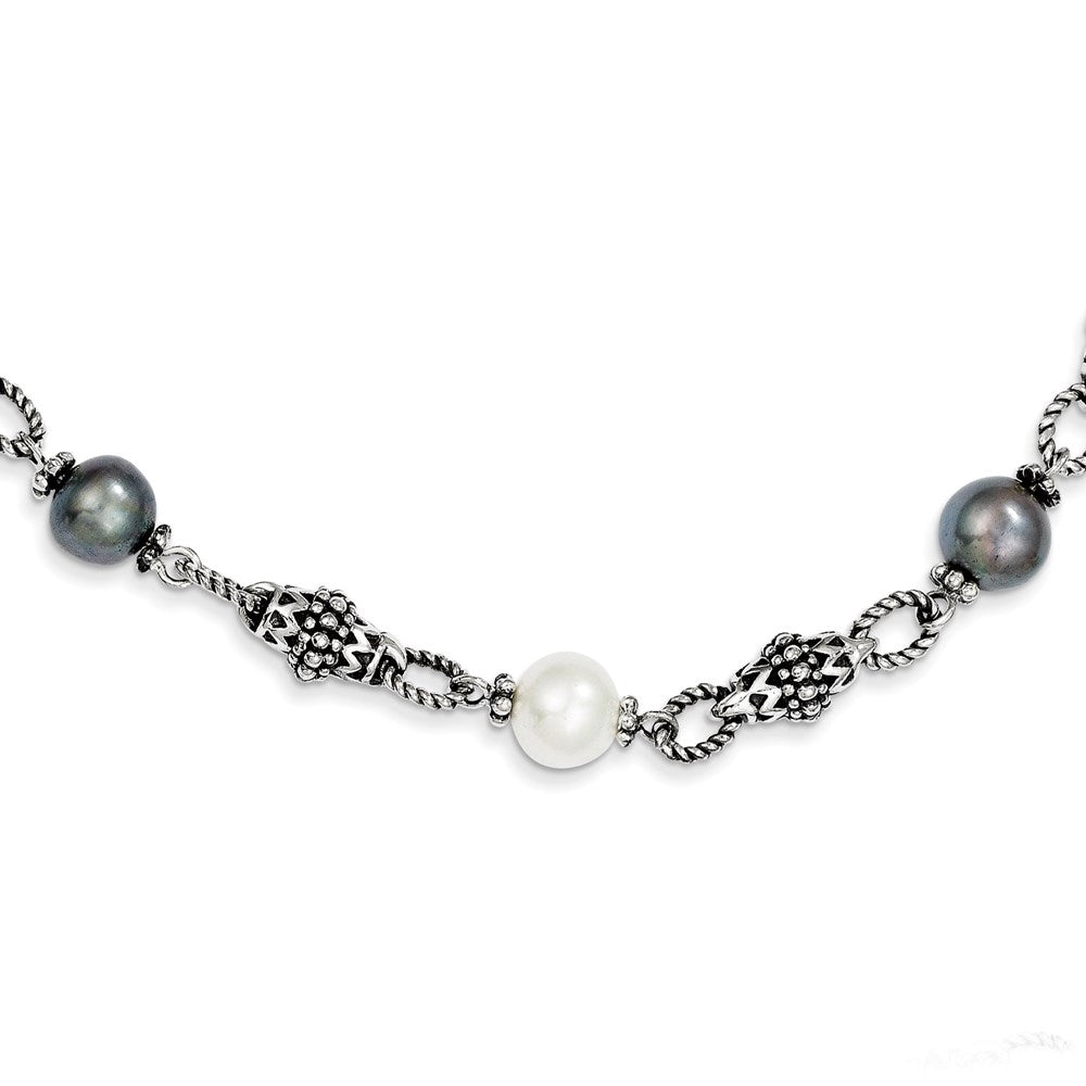 925 Sterling Silver Freshwater Cultured Black and White Pearl Necklace, 18.25"