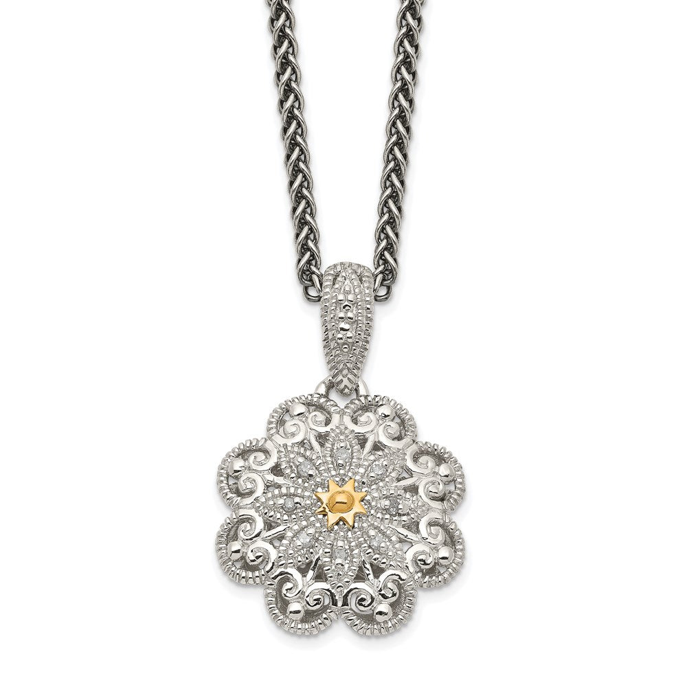 925 Sterling Silver and 14k Yellow Gold Diamond Vintage Necklace, 18"