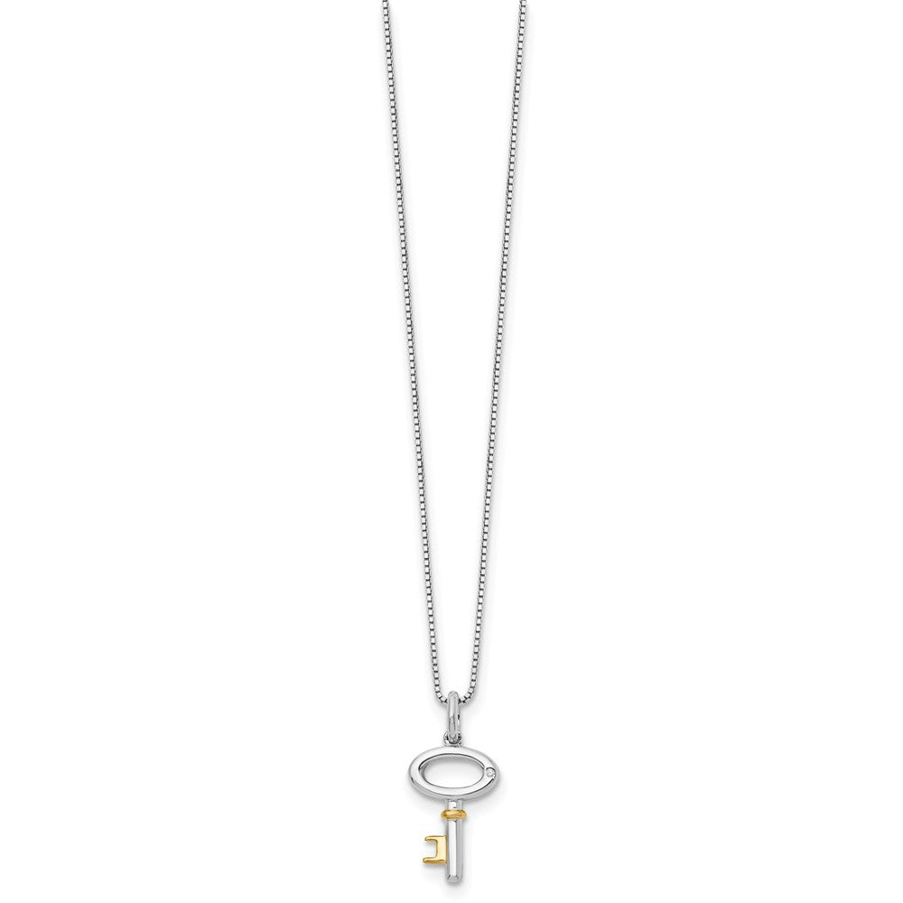925 Sterling Silver Gold Plated Diamond Key Necklace, 18"