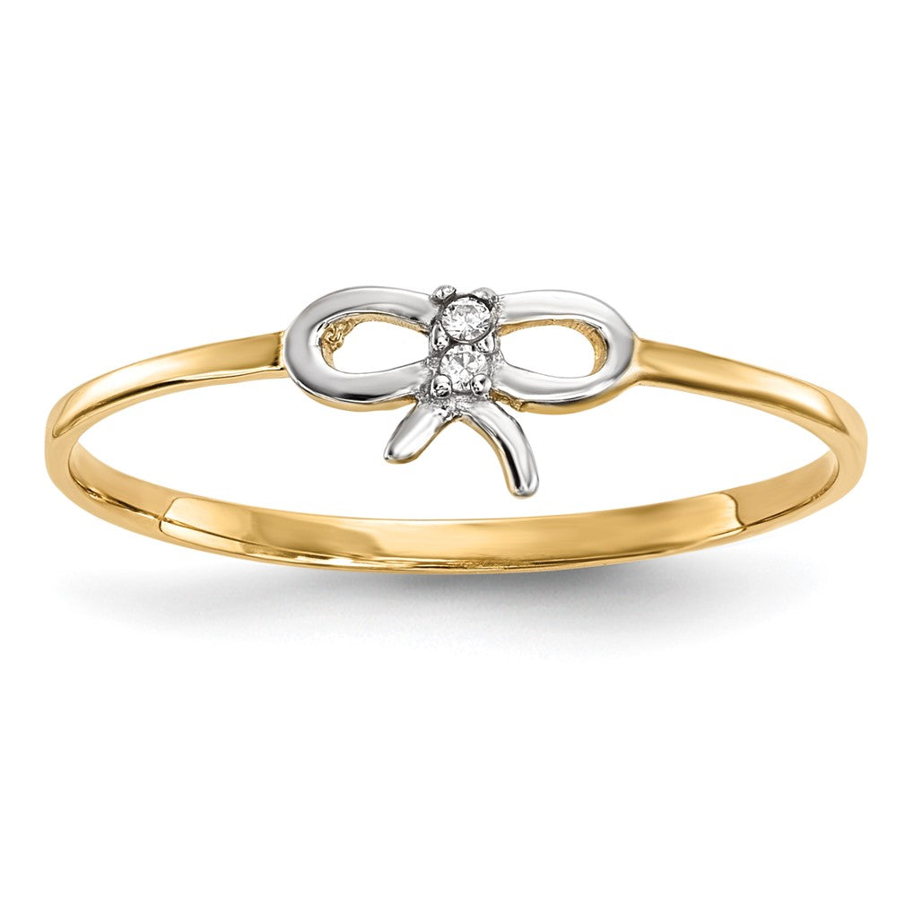 14k Yellow Gold with Rhodium Plated Cubic Zirconia Bow Ring, Size 7