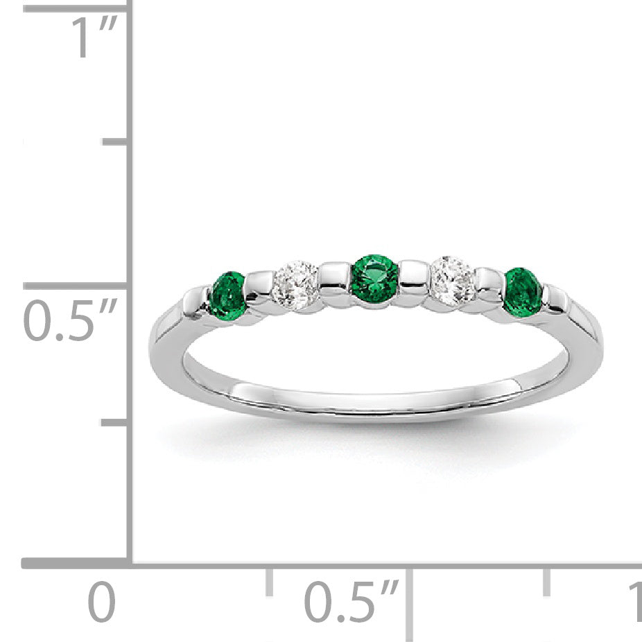 14k White Gold Diamond with Emerald Bridal Engagement Wedding Band Ring, Size 7