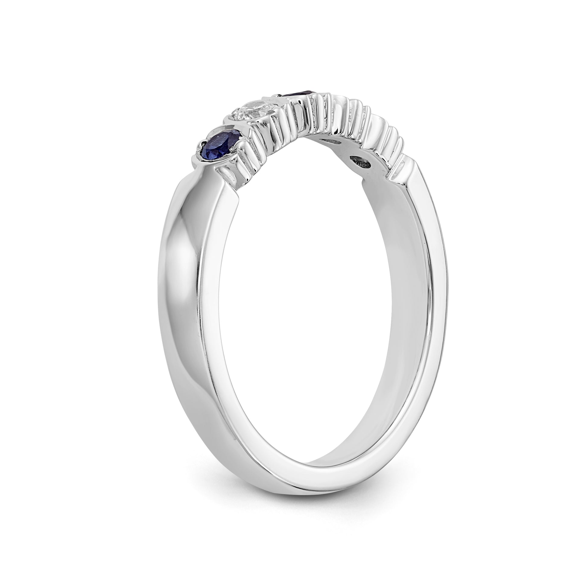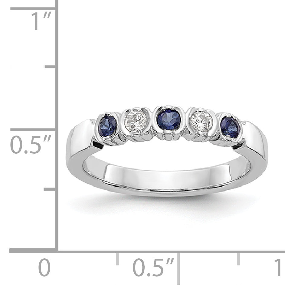 14k White Gold Diamond with Sapphire Bridal Engagement Wedding Band Ring, Size 7