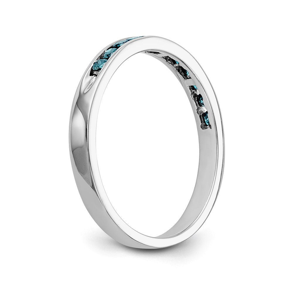 14k White Gold Blue Diamond Bridal Engagement Wedding Band Ring, Size 7