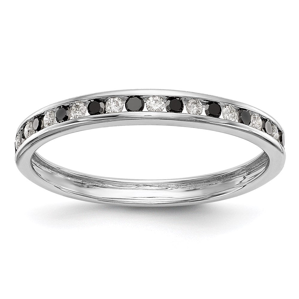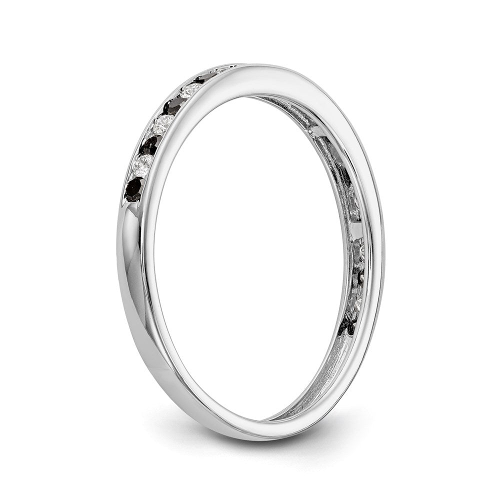 14k White Gold White and Black Diamond Bridal Engagement Wedding Band Ring, Size 7