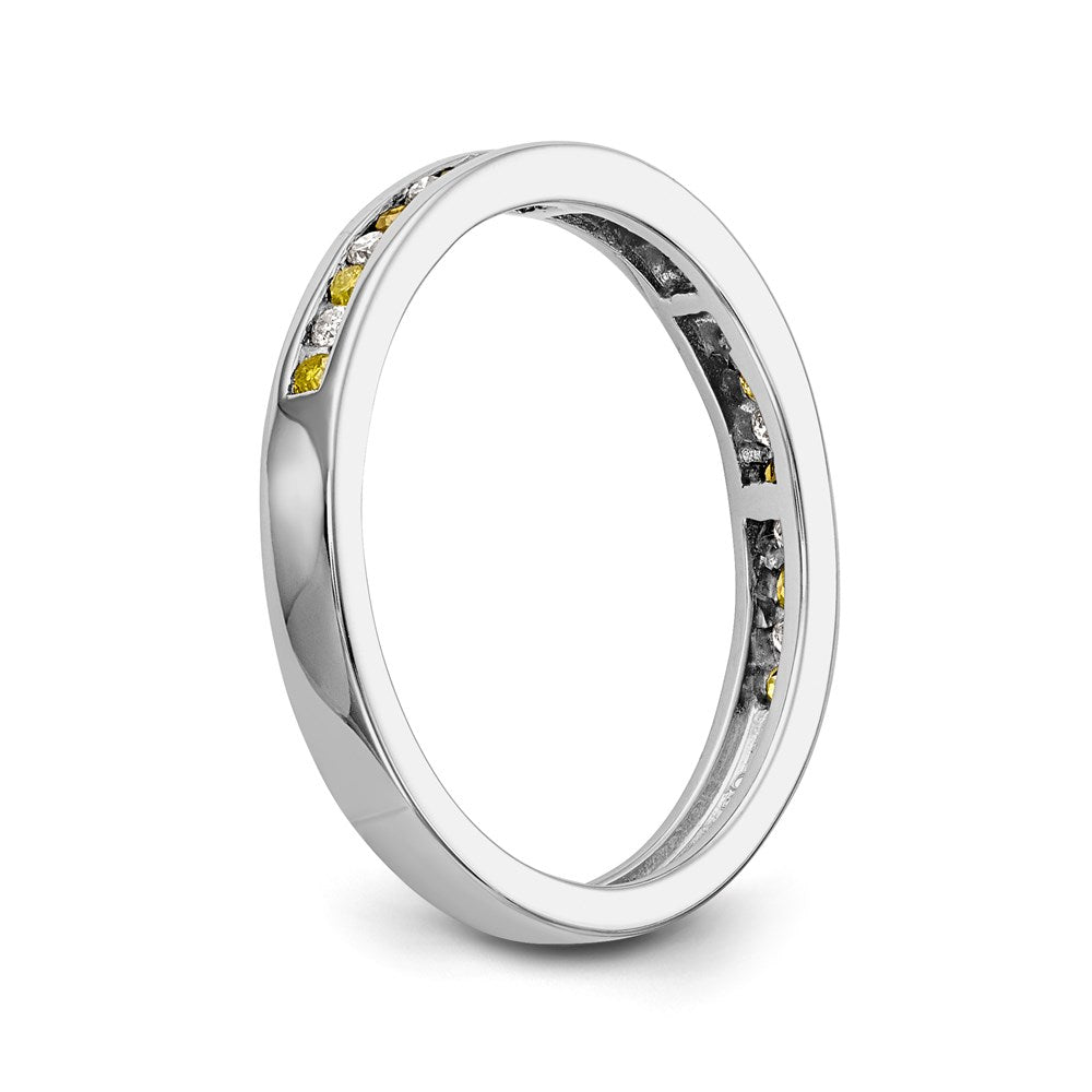 14k White Gold Yellow and White Diamond Bridal Engagement Wedding Band Ring, Size 7