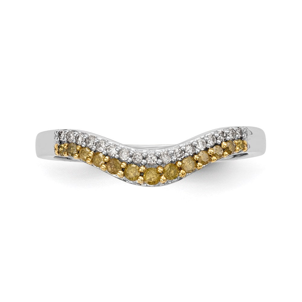 14k White Gold Yellow and White Diamond Bridal Engagement Wedding Band Ring, Size 7