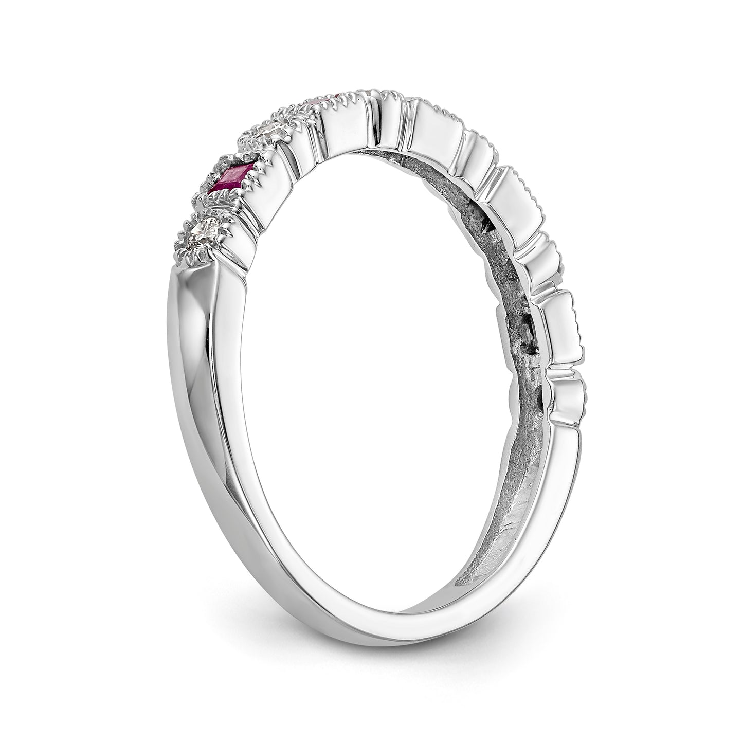 14k White Gold Diamond with Ruby Bridal Engagement Wedding Band Ring, Size 7