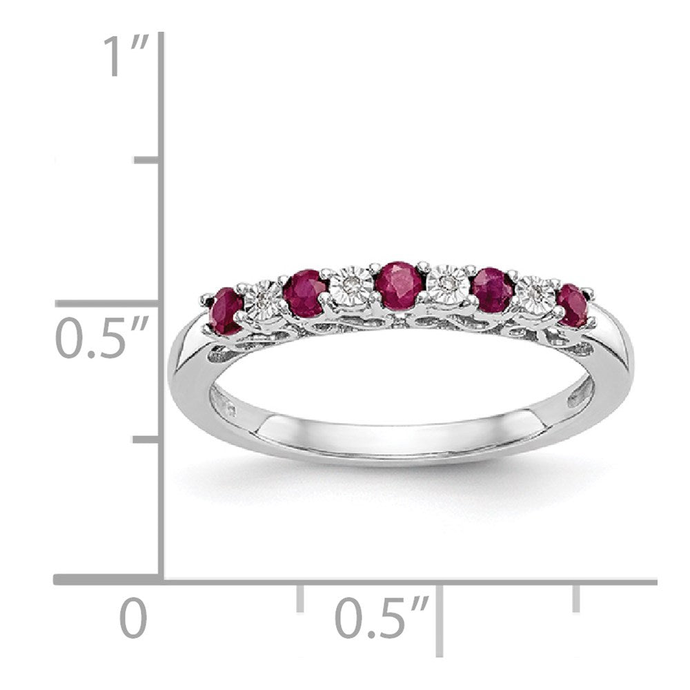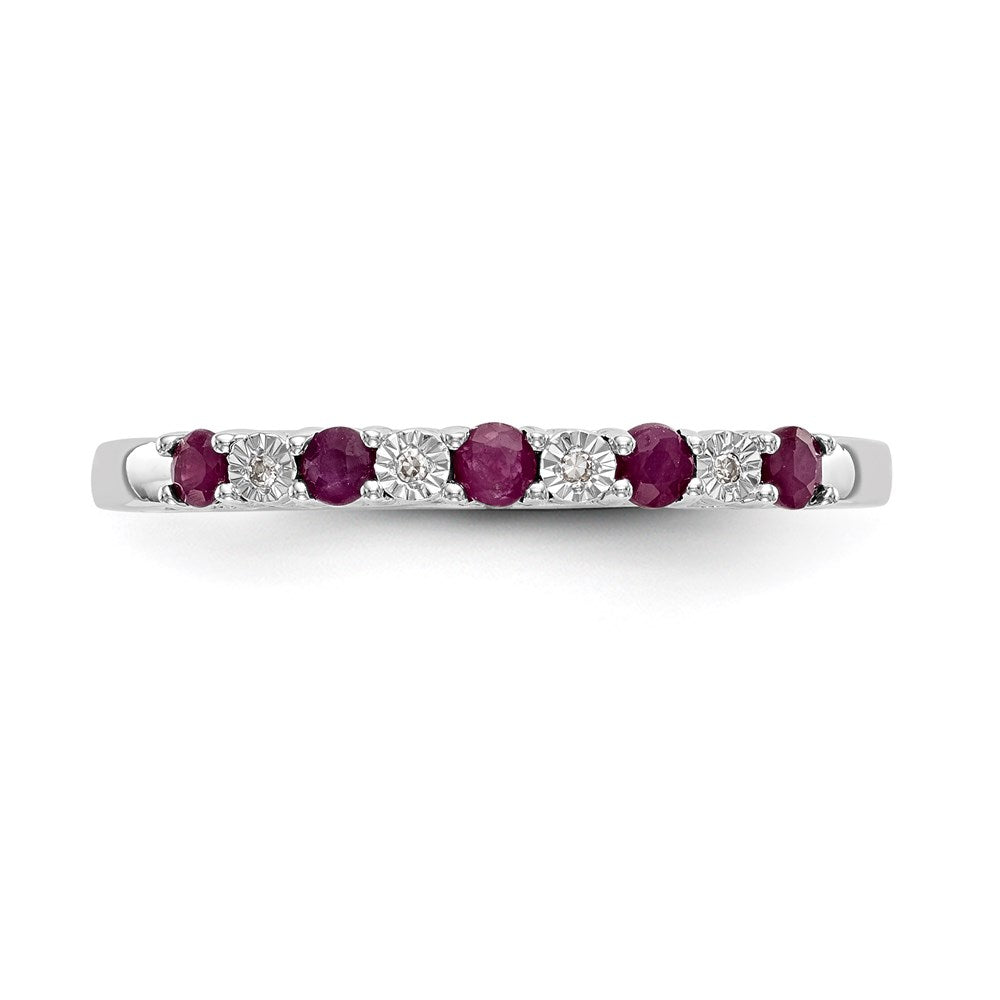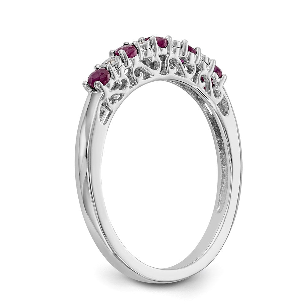 14k White Gold Diamond with Ruby Bridal Engagement Wedding Band Ring, Size 7