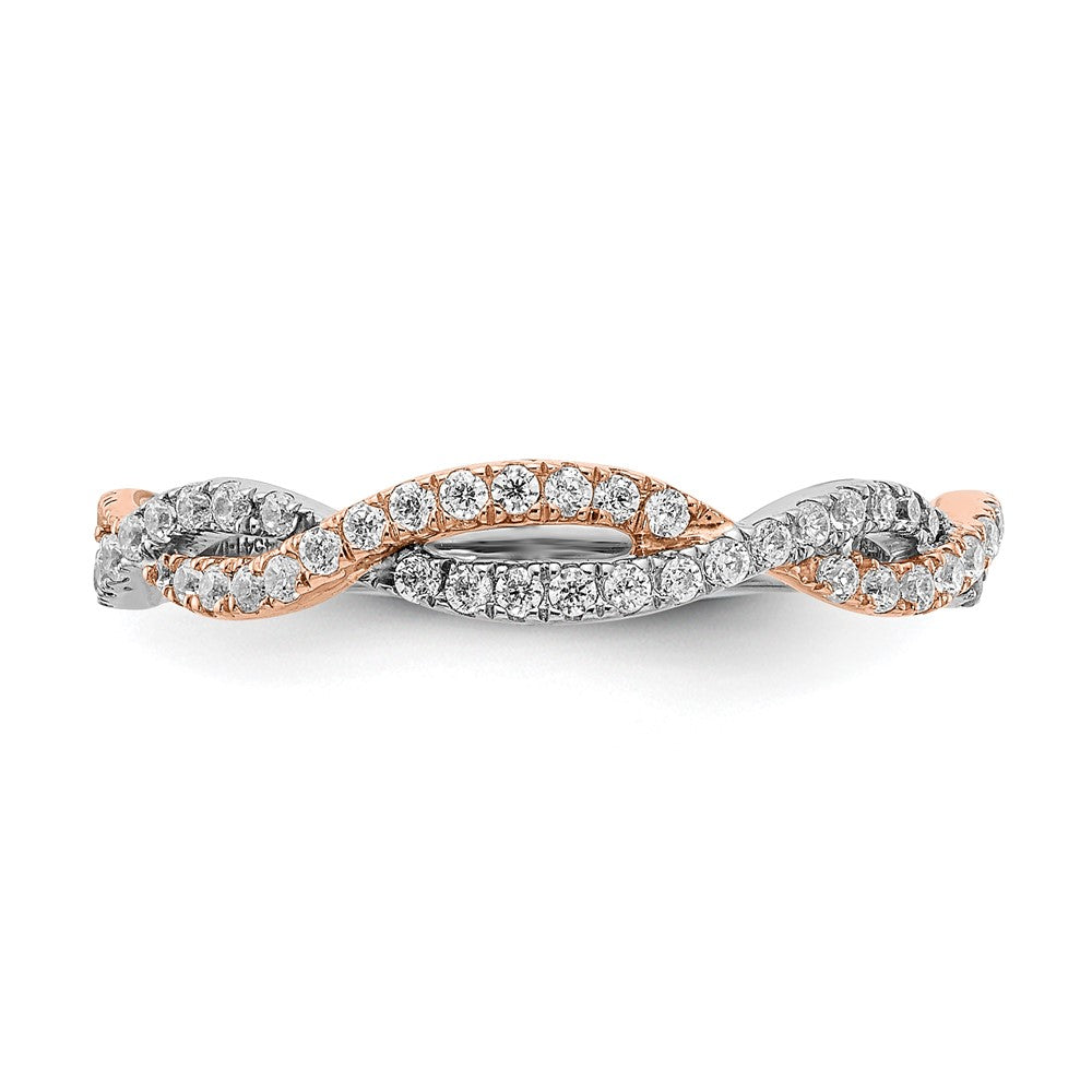14k White and Rose Gold Diamond Bridal Engagement Wedding Band Ring, Size 7