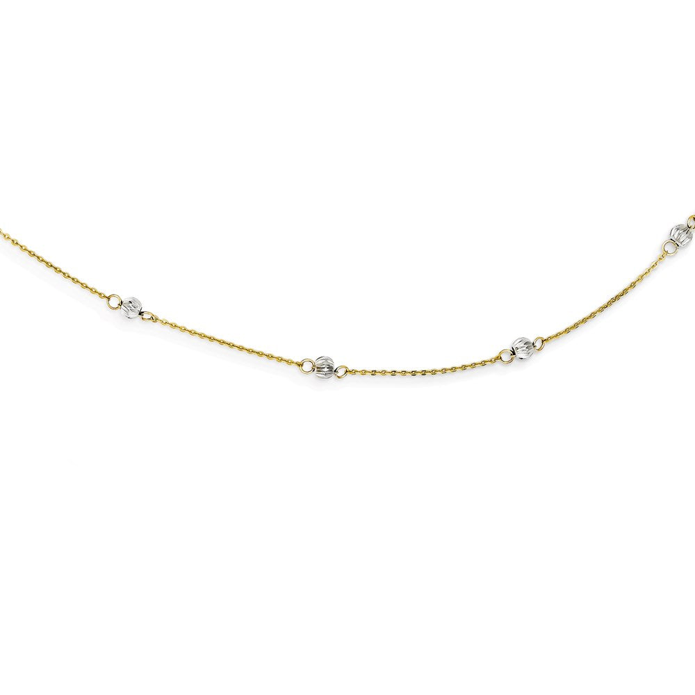 14k Two Tone Gold Diamond Cut Beads Necklace, 16" +2" Extender