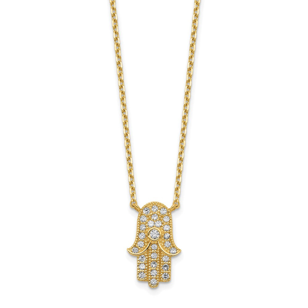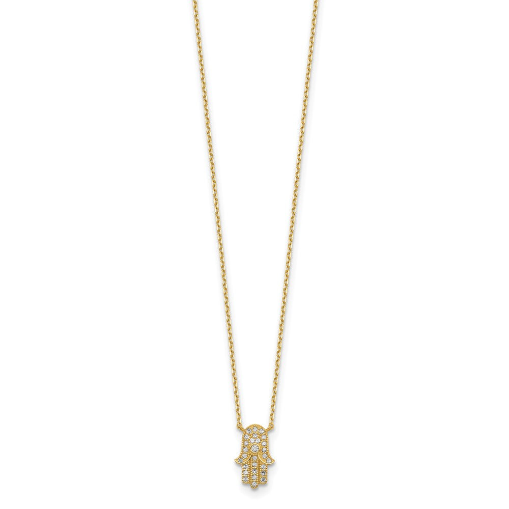 14k Yellow Gold Hamas Cubic Zirconia Necklace, 18" +2" Extender