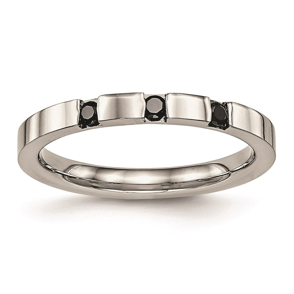 Stainless Steel 3 Stone Black Cubic Zirconia 2.5mm Bridal Engagement Wedding Band Ring, Size 7
