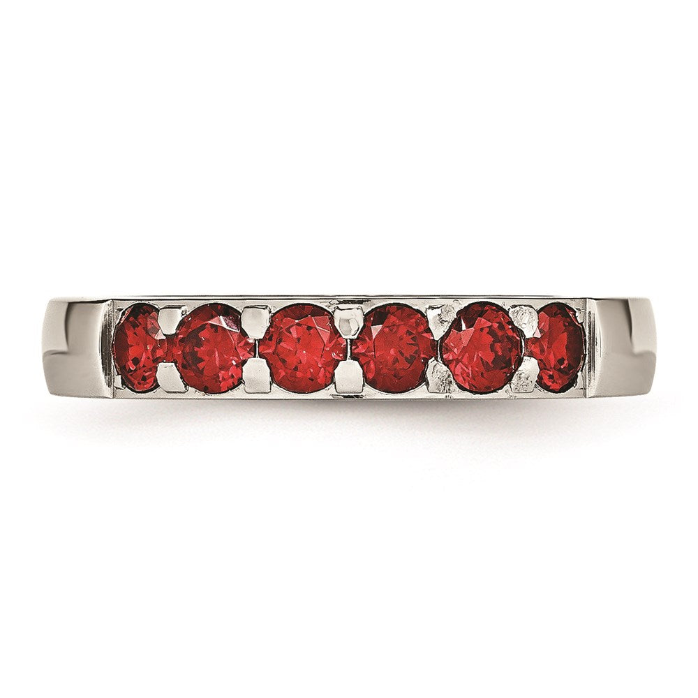 Stainless Steel Red Cubic Zirconia 4mm Bridal Engagement Wedding Band Ring, Size 6
