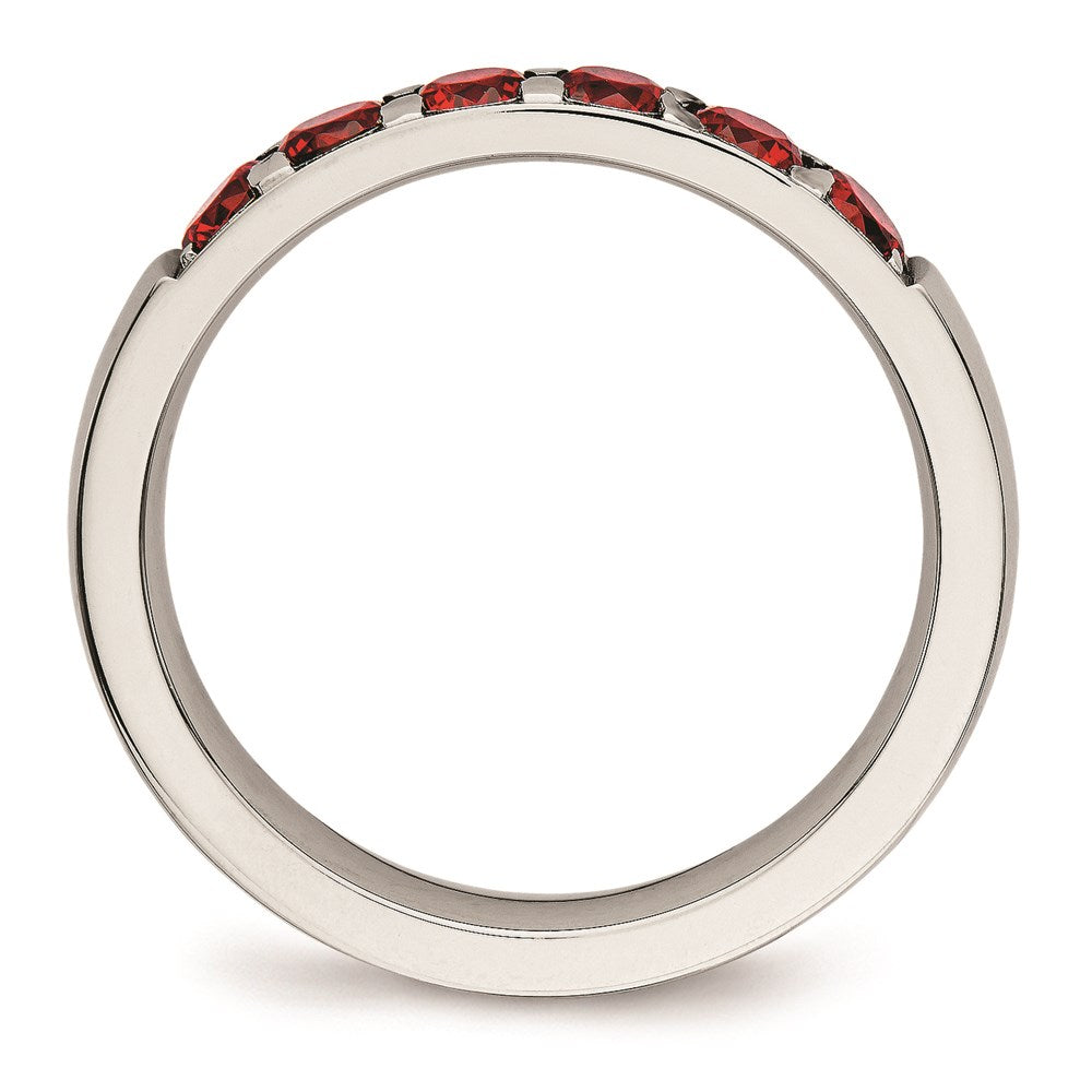 Stainless Steel Red Cubic Zirconia 4mm Bridal Engagement Wedding Band Ring, Size 7