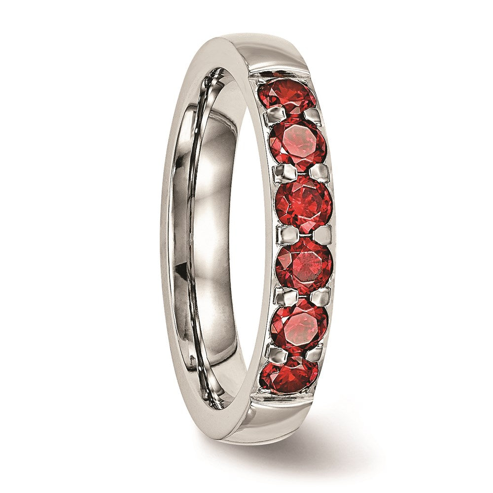 Stainless Steel Red Cubic Zirconia 4mm Bridal Engagement Wedding Band Ring, Size 8