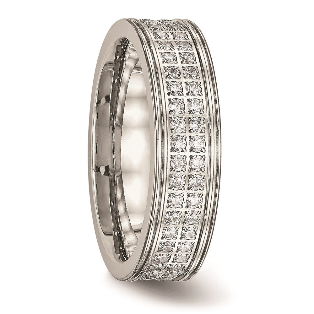 Stainless Steel Cubic Zirconia Ring, Size 9