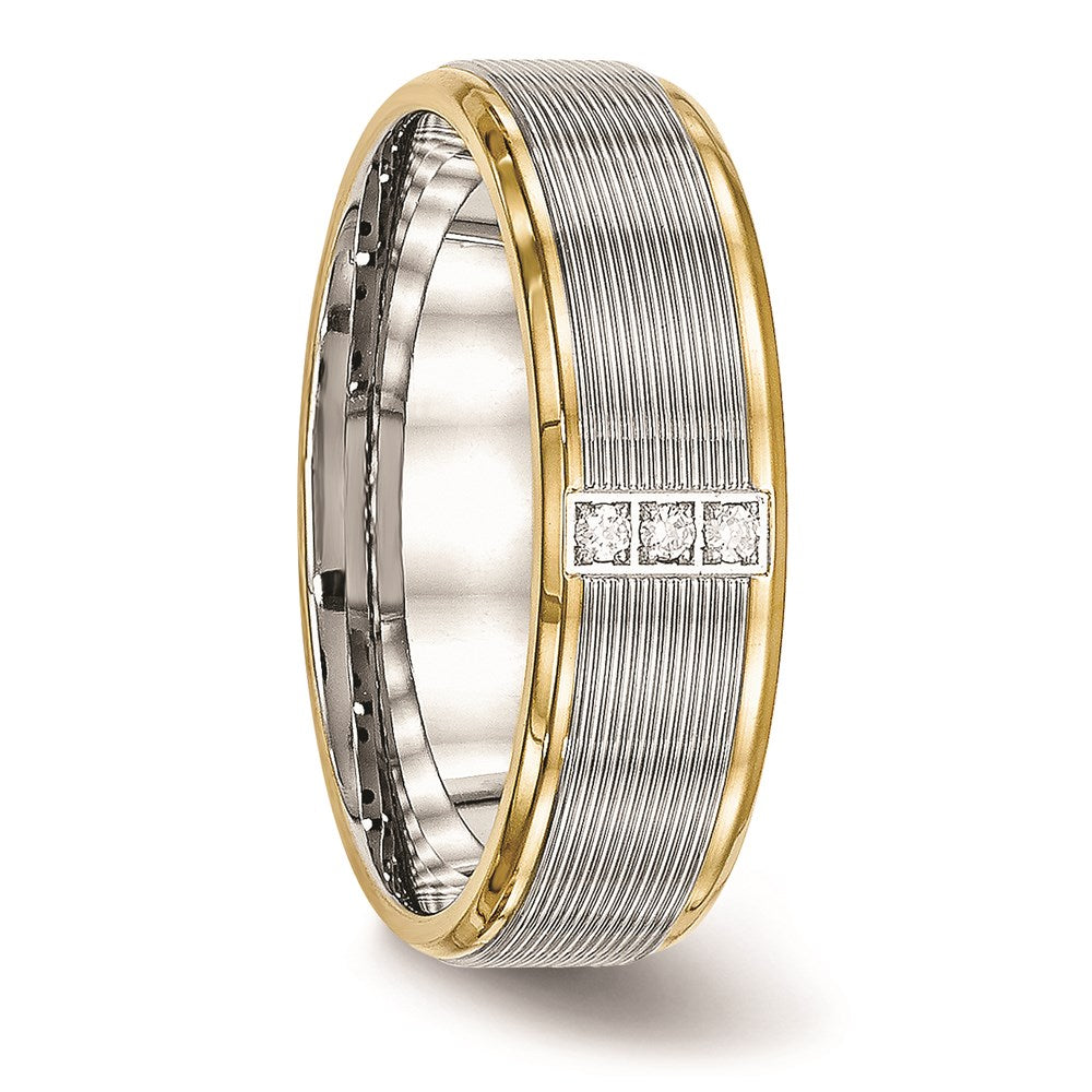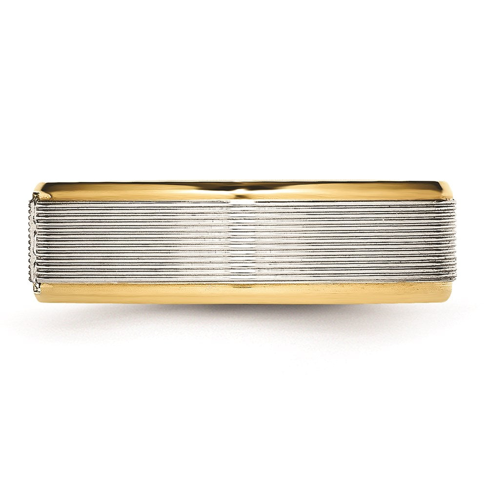 Stainless Steel Yellow Ion Plated Cubic Zirconia Grooved Comfort Back Ring, Size 6
