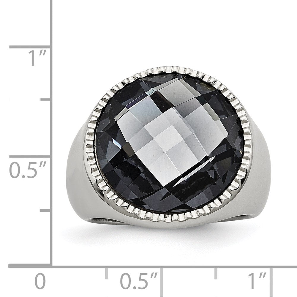 Stainless Steel Gray Glass Ring, Size 8