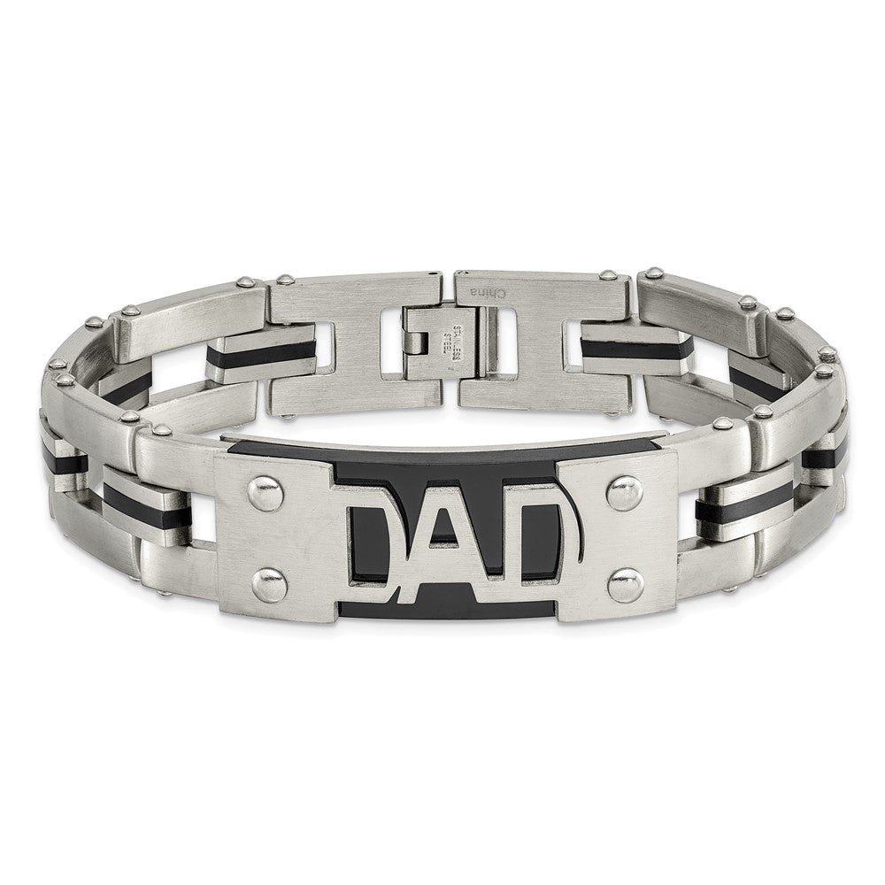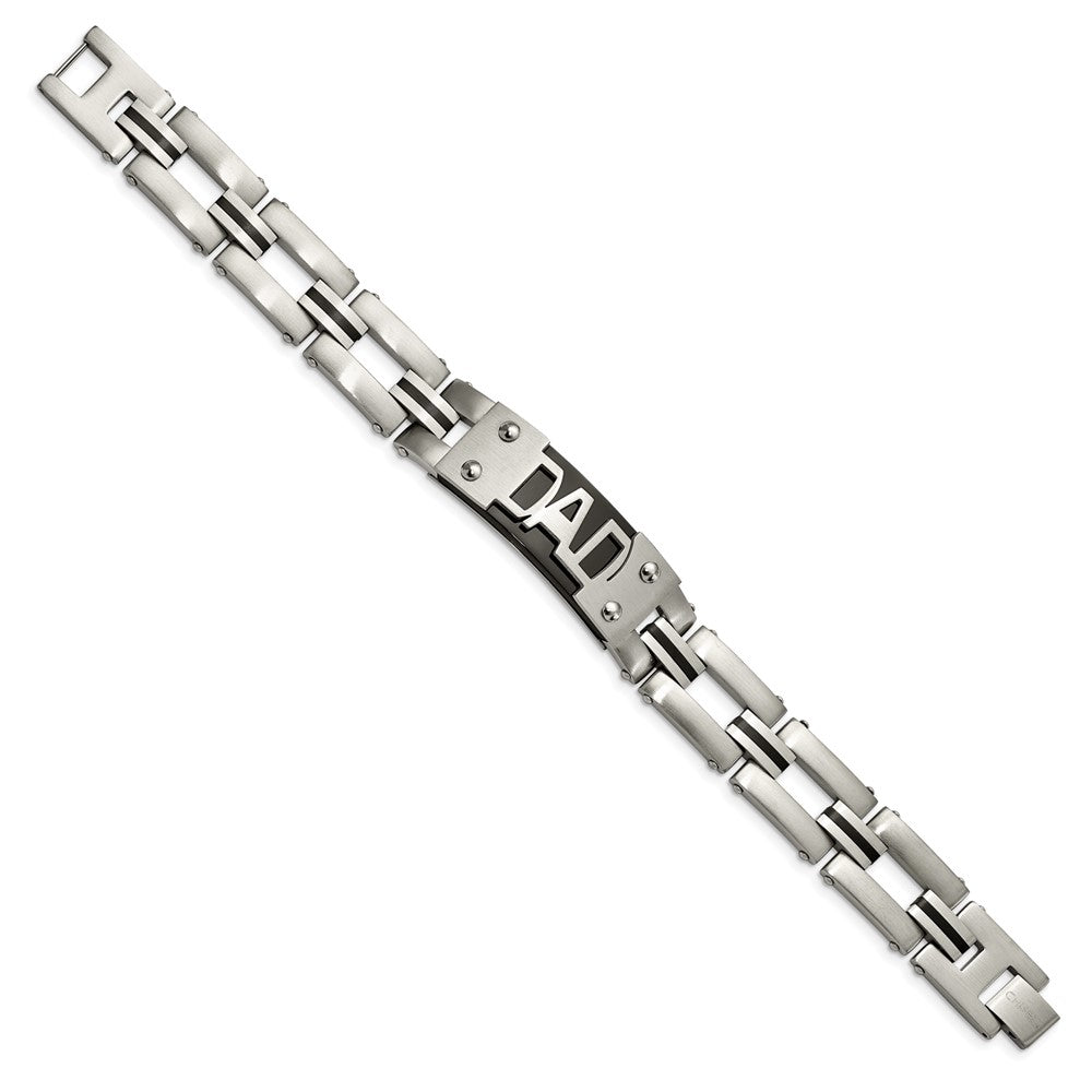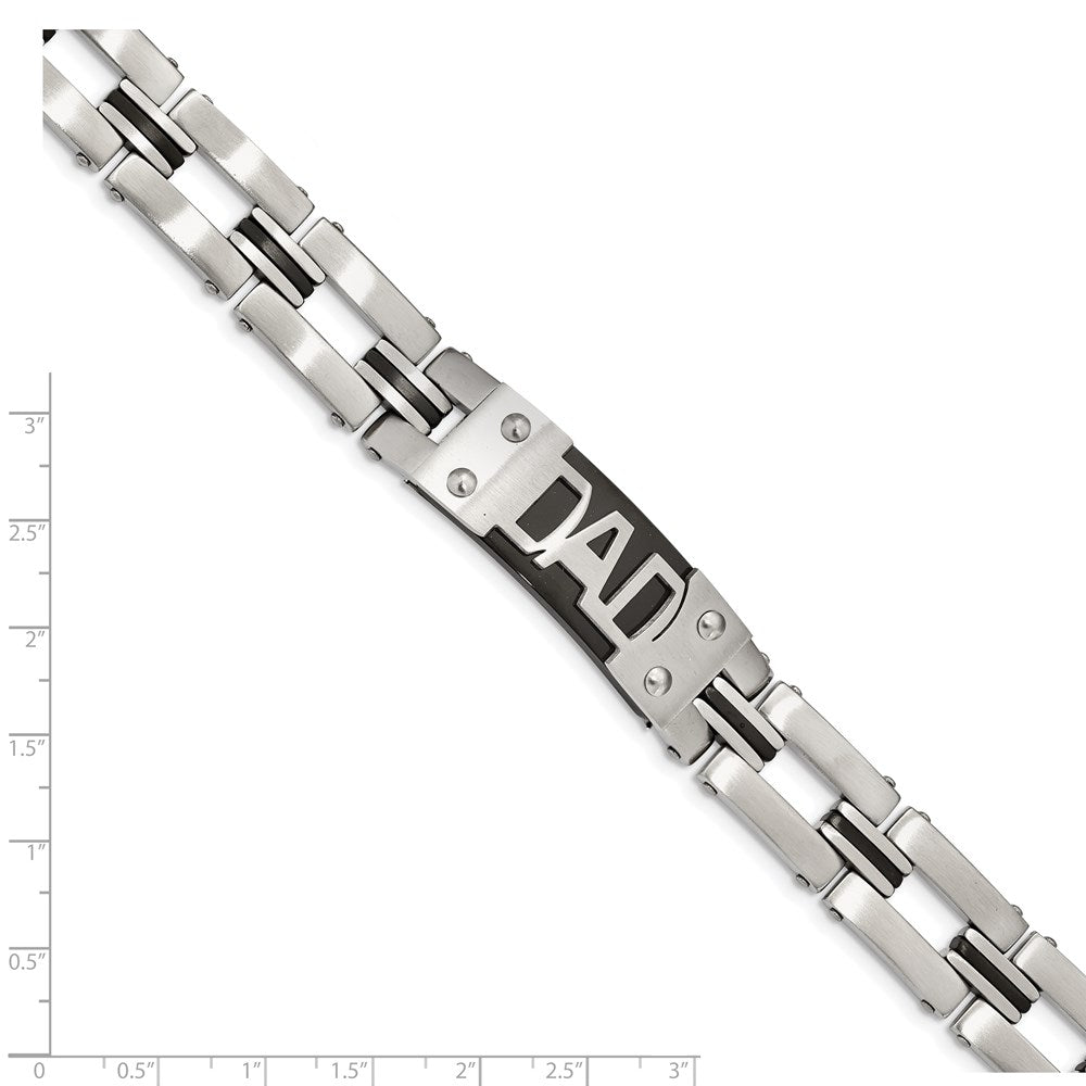 Men's Stainless Steel Brushed and Polished Black Ion Plated Dad Anklet Chain, 9"