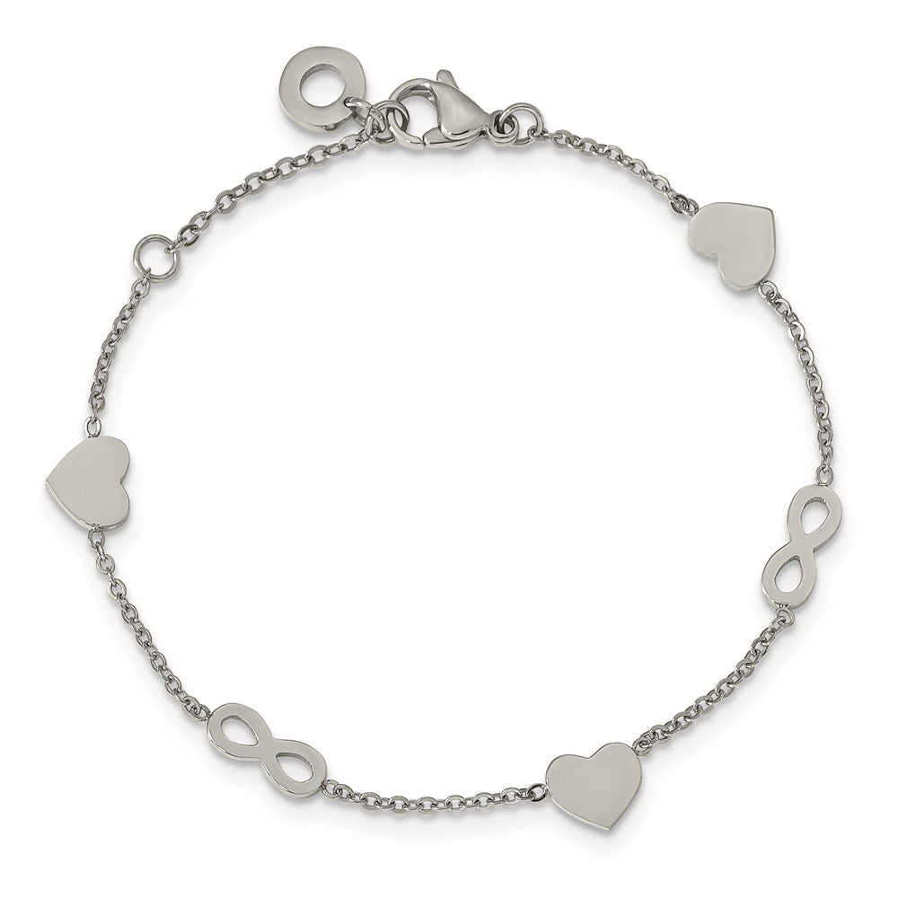Stainless Steel Heart and Infinity Bracelet, 7" +1" Extender