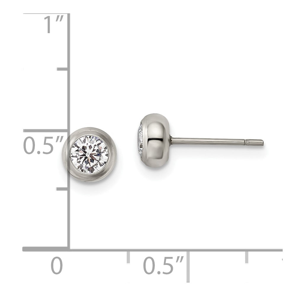 Stainless Steel 4mm Bezel Cubic Zirconia Stud Post Earrings