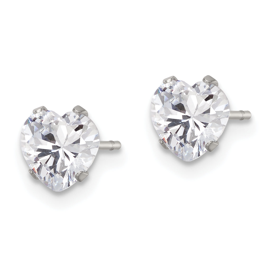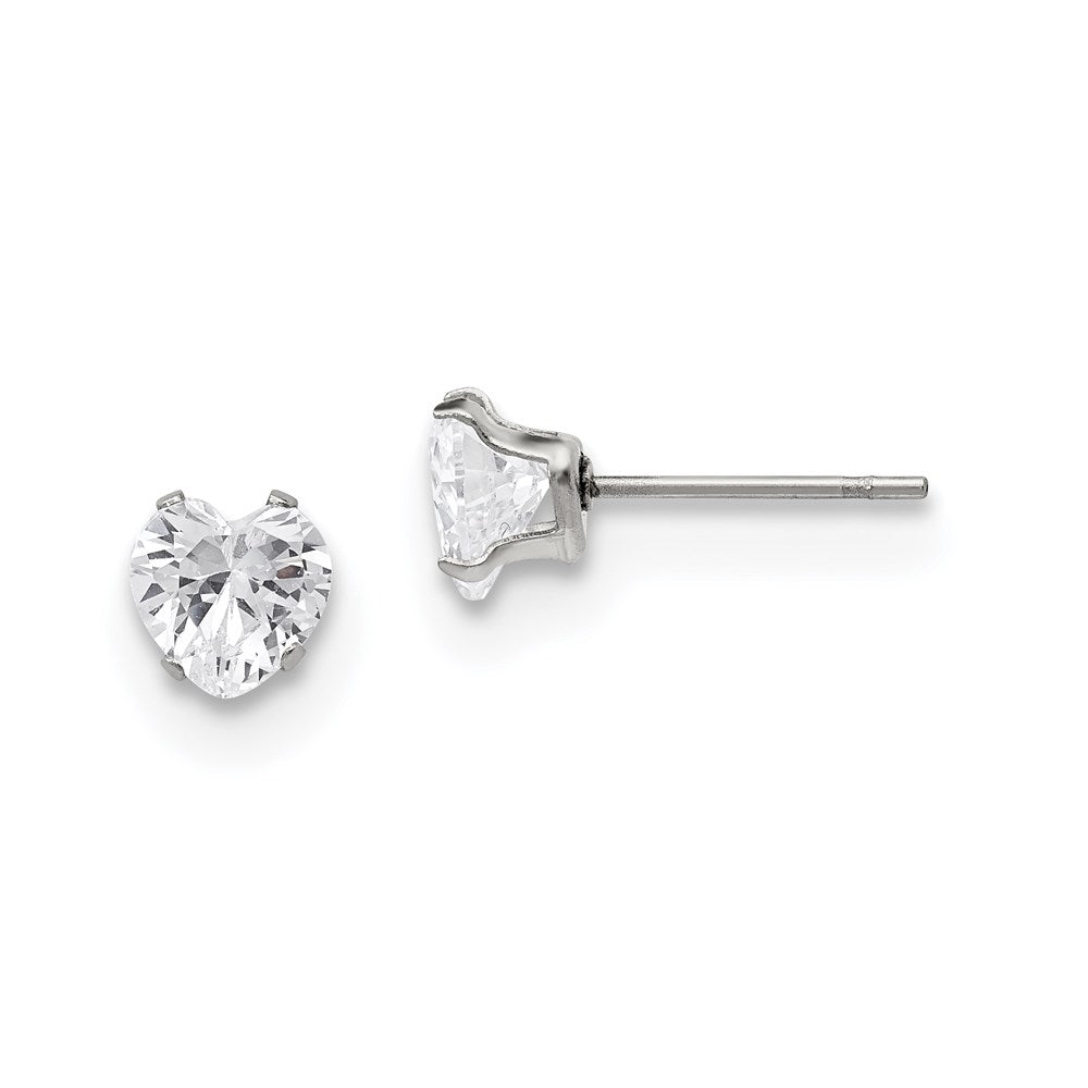 Stainless Steel 6mm Heart Cubic Zirconia Stud Post Earrings