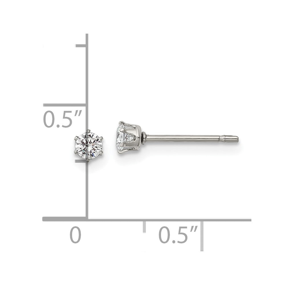 Stainless Steel 3mm Cubic Zirconia Stud Post Earrings