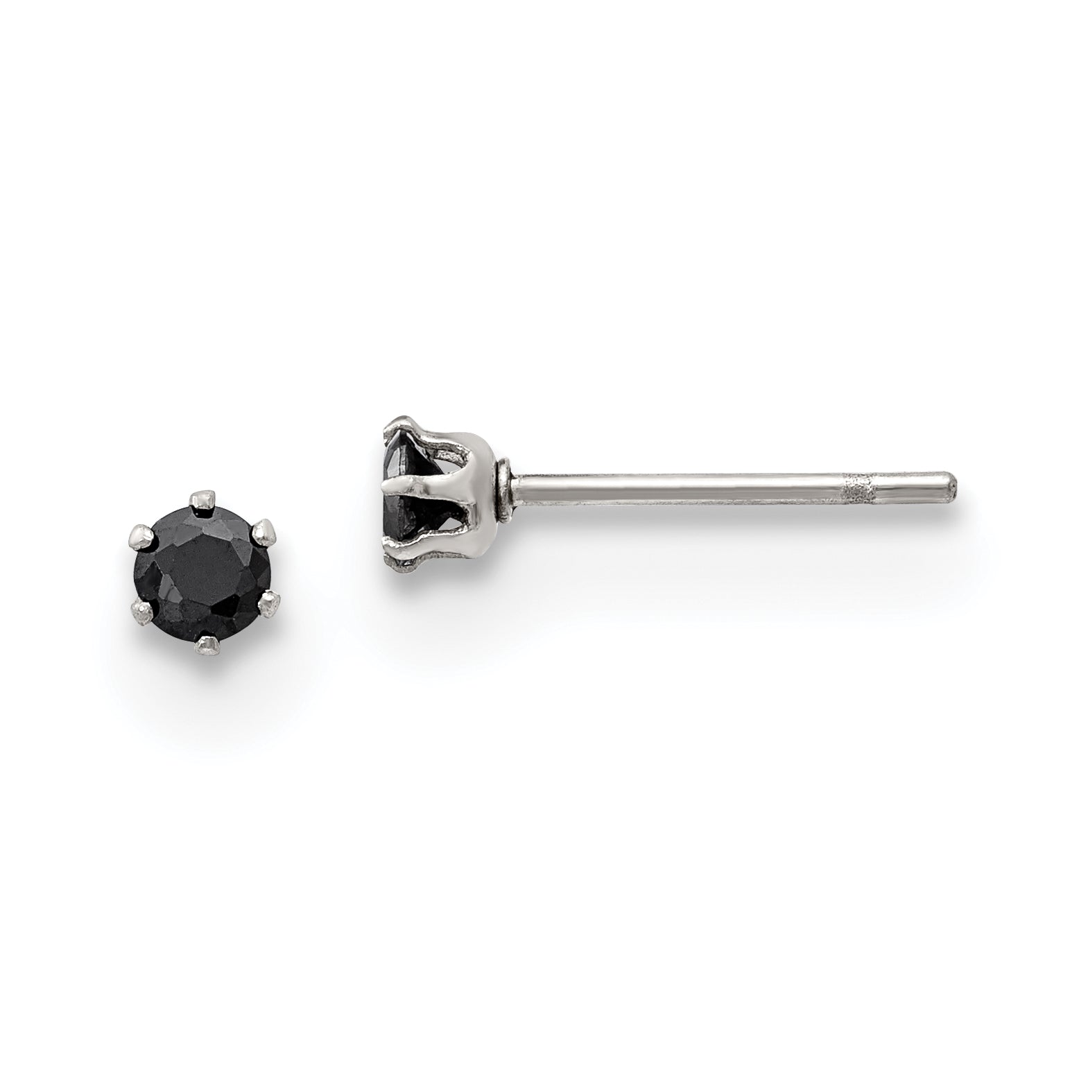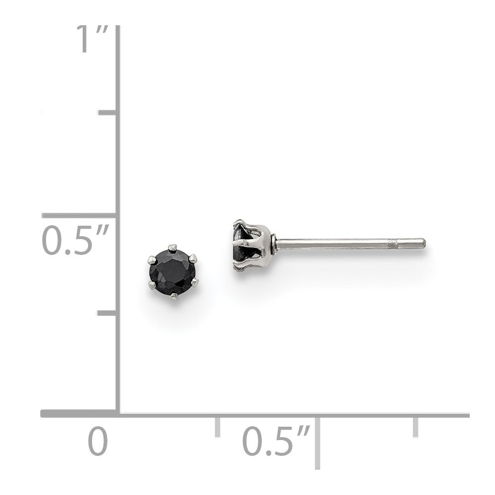 Stainless Steel 3mm Black Round Shape Cubic Zirconia Stud Post Earrings