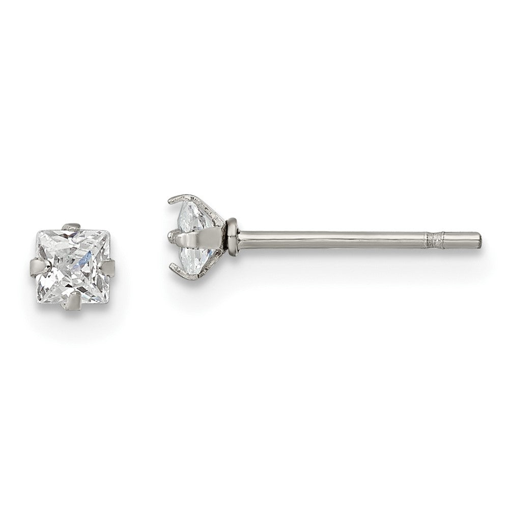 Stainless Steel 3mm Square Shape Cubic Zirconia Stud Post Earrings