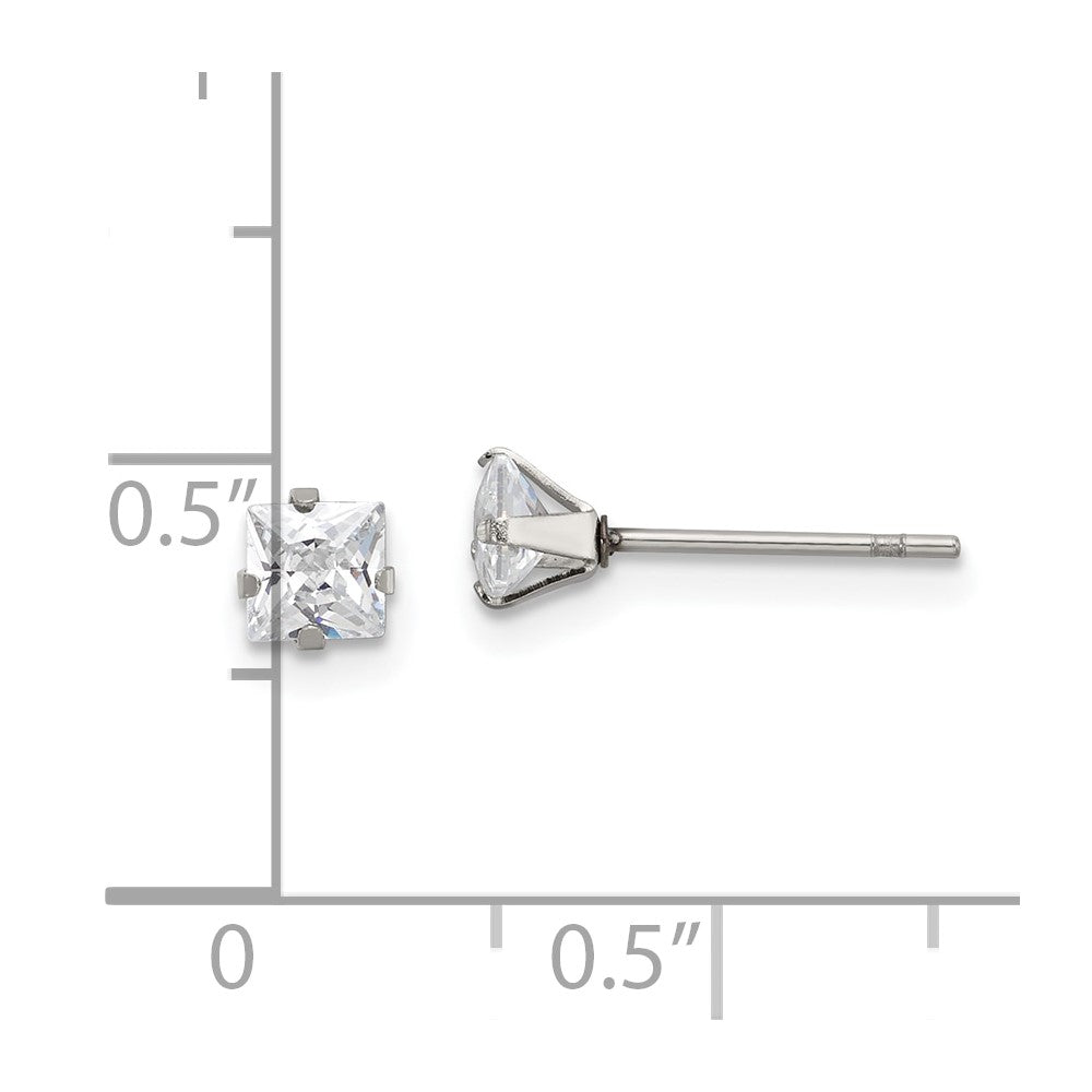 Stainless Steel 4mm Square Shape Cubic Zirconia Stud Post Earrings