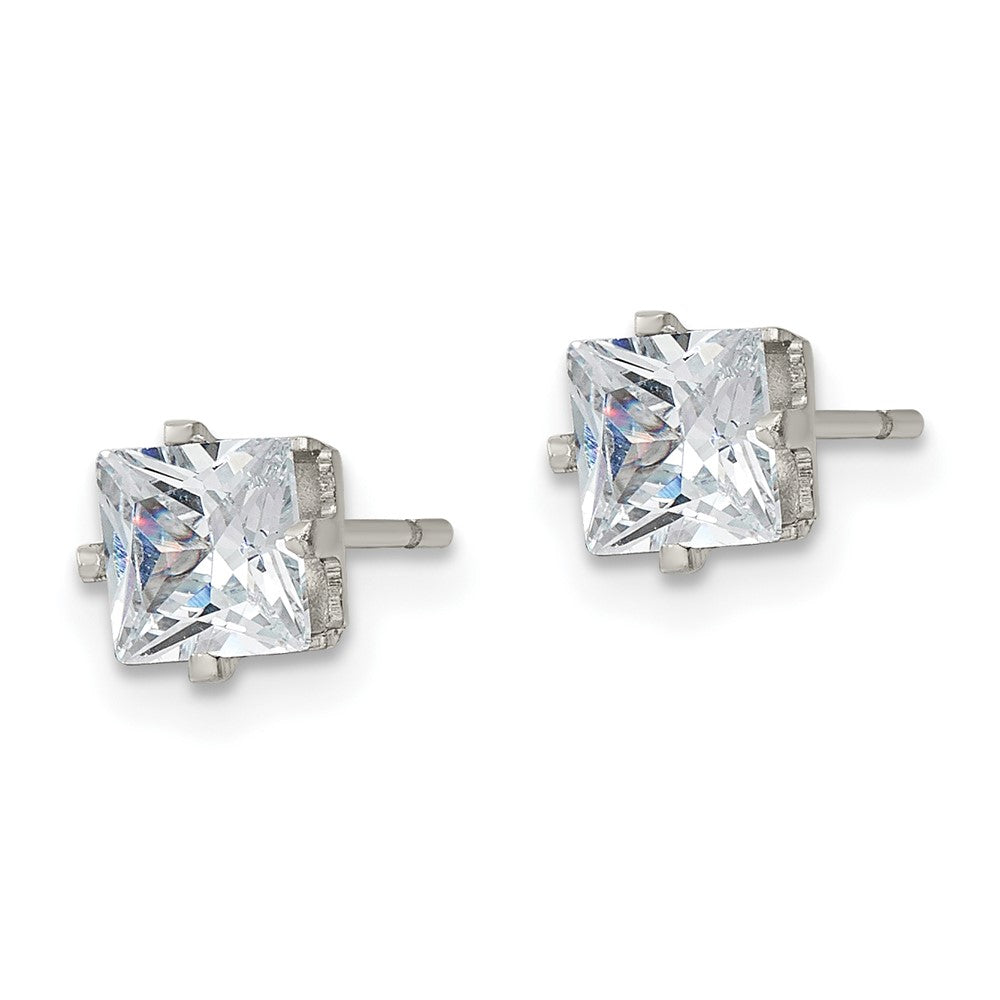 Stainless Steel 5mm Square Shape Cubic Zirconia Stud Post Earrings
