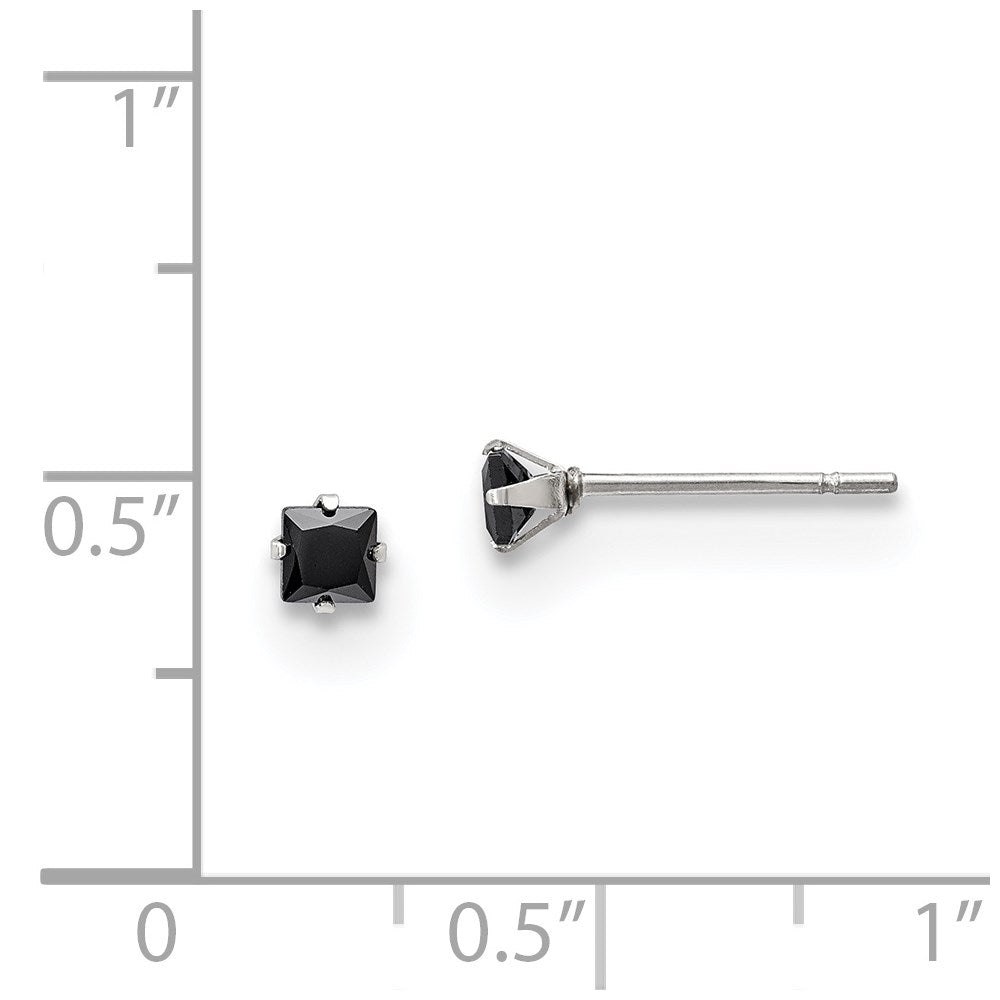 Stainless Steel 3mm Black Square Shape Cubic Zirconia Stud Post Earrings