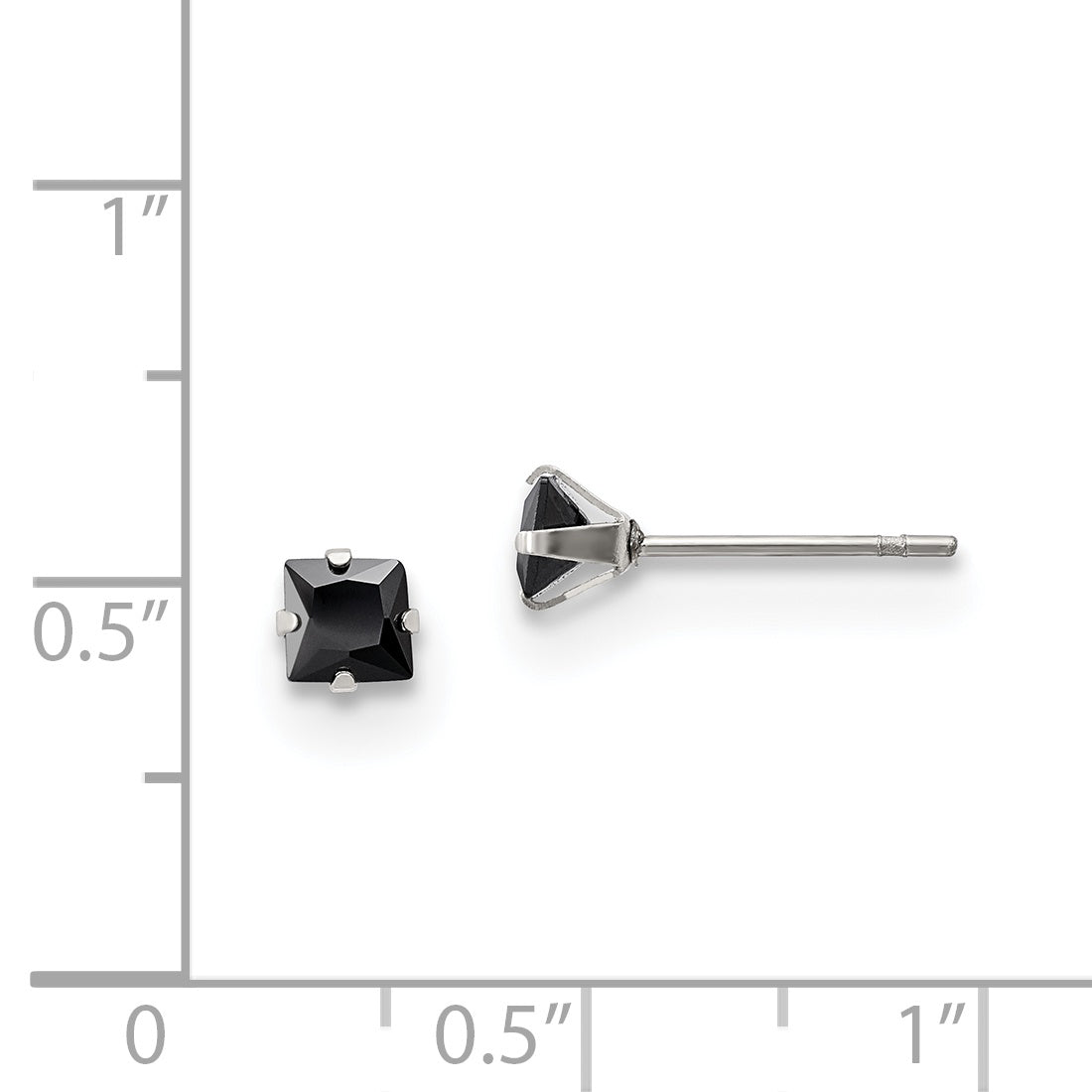 Stainless Steel 4mm Black Square Shape Cubic Zirconia Stud Post Earrings