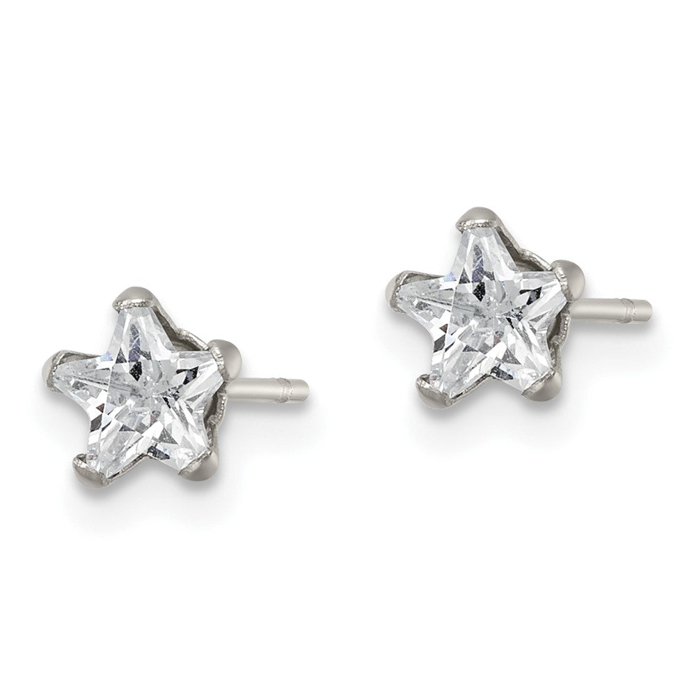 Stainless Steel 5mm Star Cubic Zirconia Stud Post Earrings