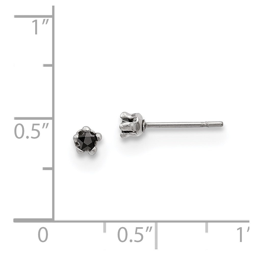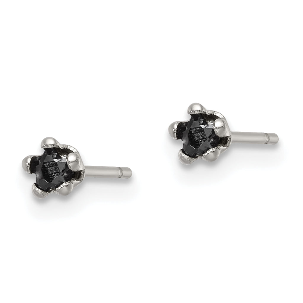 Stainless Steel 3mm Black Star Cubic Zirconia Stud Post Earrings