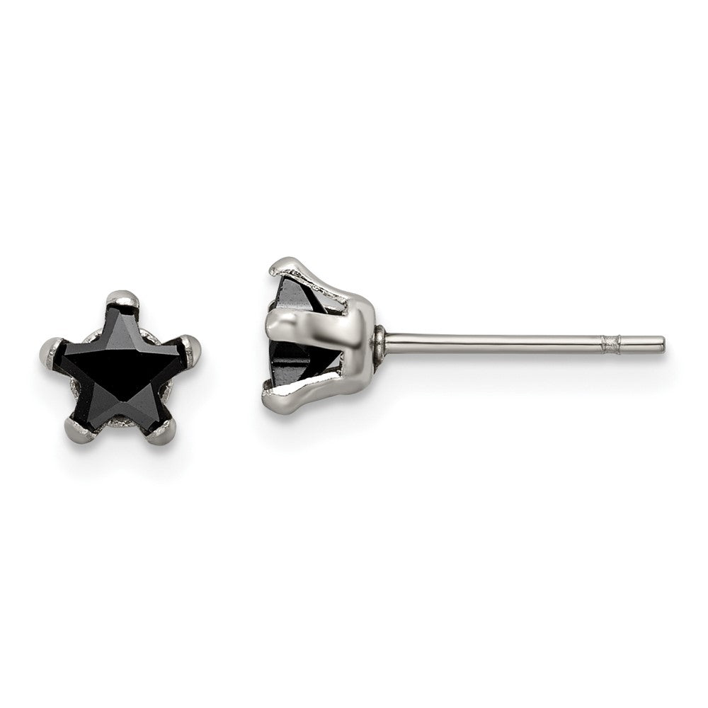 Stainless Steel 5mm Black Star Cubic Zirconia Stud Post Earrings
