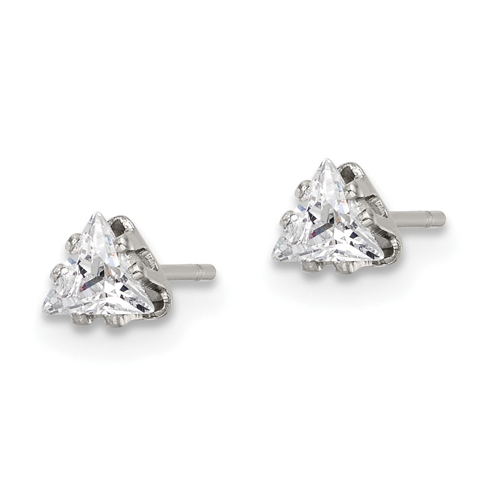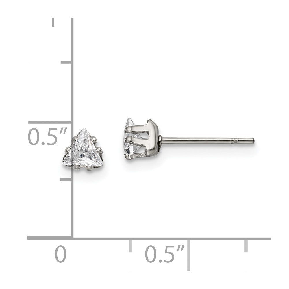 Stainless Steel 4mm Triangle Cubic Zirconia Stud Post Earrings