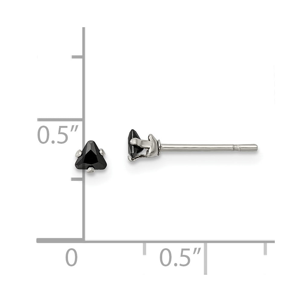Stainless Steel 3mm Black Triangle Cubic Zirconia Stud Post Earrings